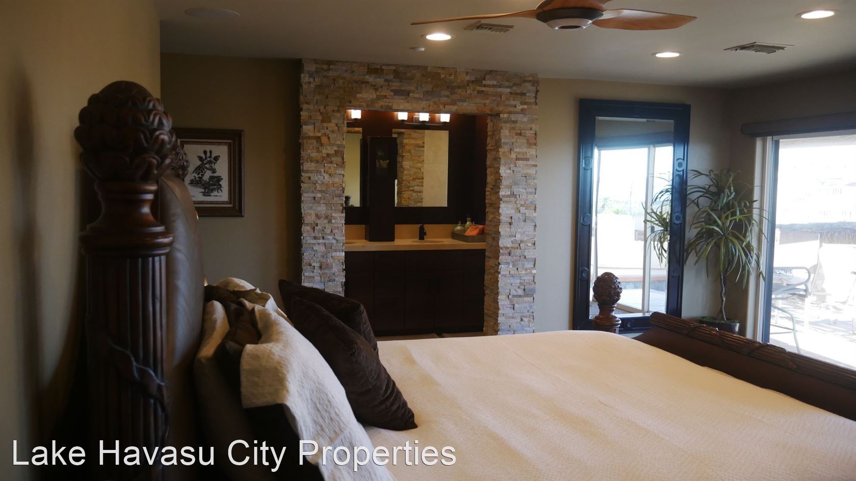 MUST SEE! Beautiful Winter Rental with Waterfall Pool - Available Winter Oct-April! 4 month min. Fully furnished! This home has breathtaking lake and sunset views. Located lake side of HWY 95. Large patio with built in BBQ. The pool has a waterfall feature . Spa look area is not heated. This home has two master bedrooms both with king beds and custom bathrooms/showers. This home has Internet/WiFi and Smart TV's in the rooms. It does not have cable/dish for tv service. Utilities included with $100 cap on electric. NO PETS. We require an approved application prior to showing. Applications can be filled out online at HavasuRentalHome.com Ask for Amanda.